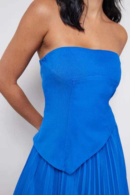 Bandeau Bodice Pleated Chiffon Midi Dress